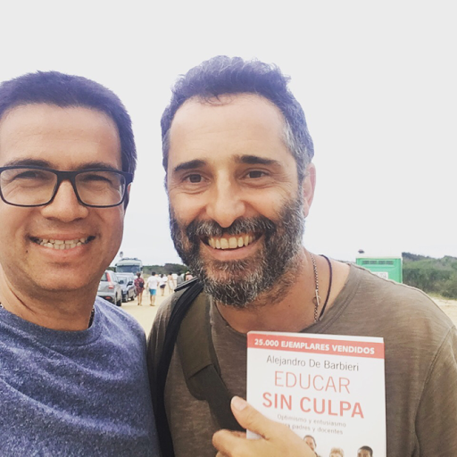 Ni lerdo ni perezoso le dije que tenía un libro en el auto ( siempre llevo libros en el auto para ocasiones como esta !?...) y fuimos caminando junto a sus hijos pequeños charlando sobre la paternidad la culpa y la sobreprotección .